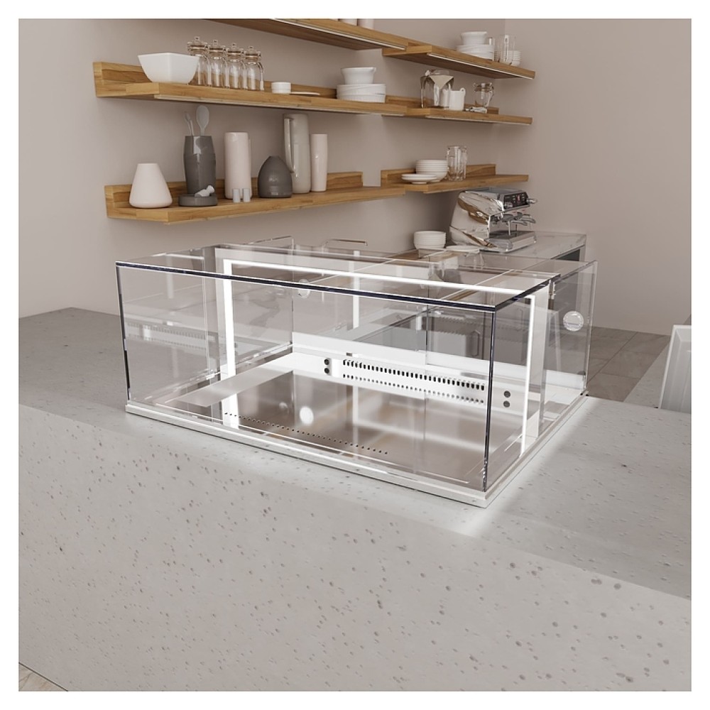 Встраиваемая кондитерская витрина Finist GLASSIER M Gm-12/8/3 предназначена для кратковременного хранения и предпродажной демонстрации десертов и кондитерских изделий на предприятиях общественного питания и торговли. Г-образные двери-купе обеспечивают удобный доступ к зоне выкладки. Поддон выполнен из зеркальной нержавеющей стали, агрегатная часть - из оцинкованной стали, купол - из просветленного стекла, Г-образные створки - из монолитного поликарбоната.
