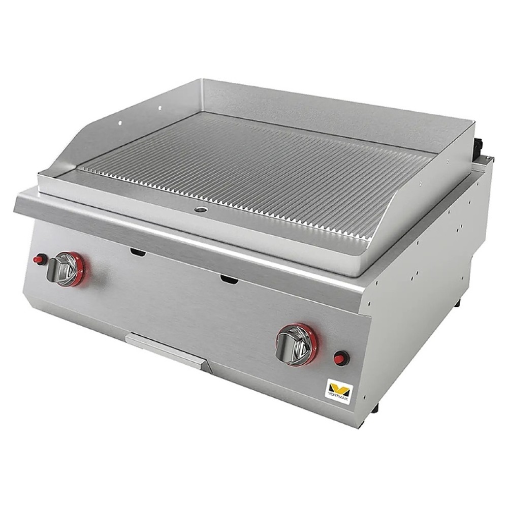 Настольная жарочная поверхность Vortmax SFRG 78 используется на предприятиях общественного питания и торговли для приготовления широкого ассортимента блюд из мяса, рыбы и овощей методом жарки. Модель оснащена 2 независимыми зонами нагрева с рифленой рабочей поверхностью и расположенной на наклонной фронтальной стенке электромеханической панелью управления. Корпус и рабочая поверхность выполнены из нержавеющей стали.