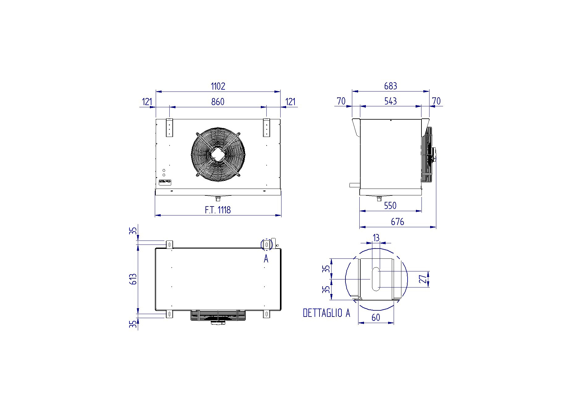 Воздухоохладитель Rivacold RCMR1450804 используется на предприятиях пищевой промышленности, общественного питания и торговли для поддержания оптимальной температуры в холодильных камерах, предназначенных для хранения охлажденной продукции. Модель состоит из корпуса, теплообменника, вентилятора с внешним ротором и защитной решеткой. Корпус «кубической» формы выполнен из алюминиевых панелей, теплообменник – из медных рифленых трубок и алюминиевых ламелей, шайбы и гайки – из нержавеющей стали.