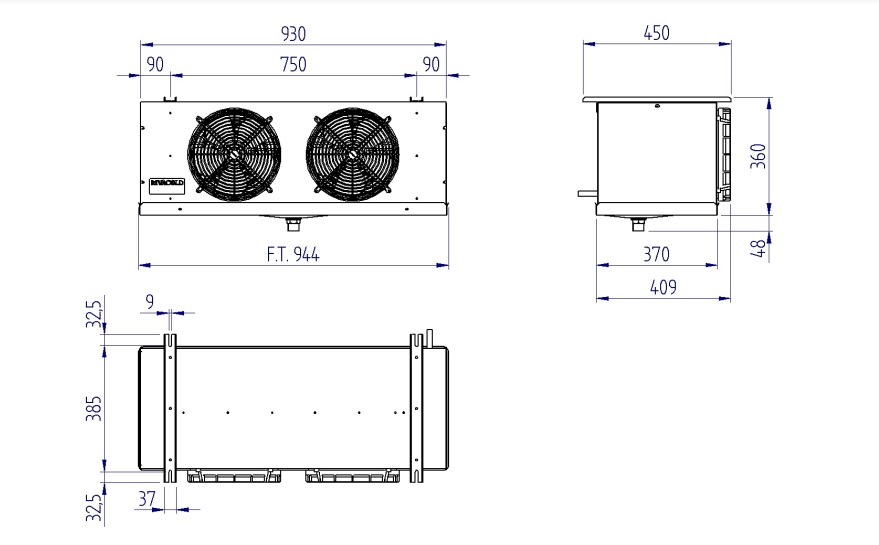 Воздухоохладитель Rivacold RCS2250604 используется на предприятиях пищевой промышленности, общественного питания и торговли для поддержания оптимальной температуры в холодильных камерах, предназначенных для хранения замороженной продукции. Модель состоит из теплообменника, 2 вентиляторов с защитными решетками и корпуса. Корпус «кубической» формы выполнен из алюминиевых панелей, теплообменник – из медных трубок и алюминиевых ламелей, шайбы и гайки – из нержавеющей стали.