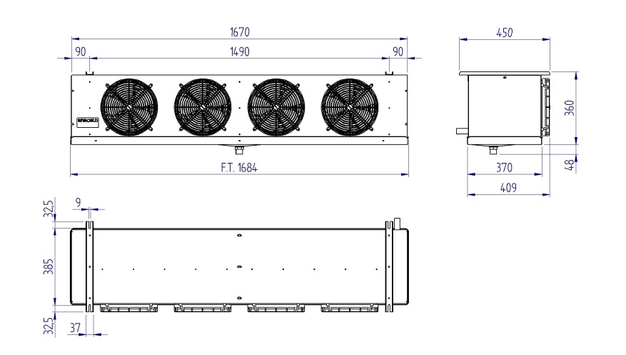 Воздухоохладитель Rivacold RCS4250406 используется на предприятиях пищевой промышленности, общественного питания и торговли для поддержания оптимальной температуры в холодильных камерах, предназначенных для хранения охлажденной и замороженной продукции. Модель состоит из теплообменника, 4 вентиляторов с защитными решетками и корпуса. Корпус «кубической» формы выполнен из алюминиевых панелей, теплообменник – из медных трубок и алюминиевых ламелей, шайбы и гайки – из нержавеющей стали.
