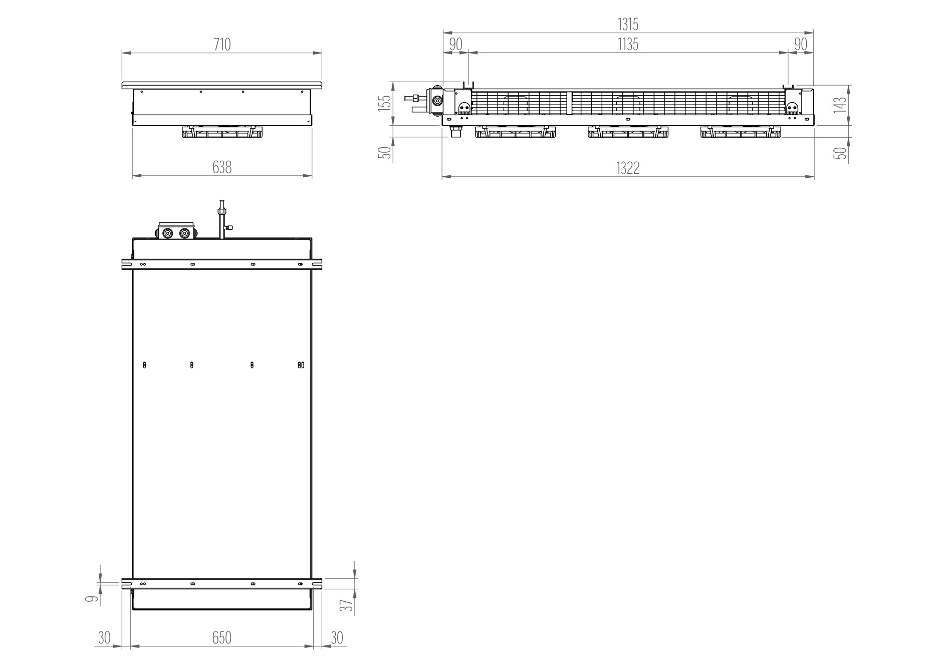 | Высота205 мм | Глубина710 мм | Ширина1322 мм |