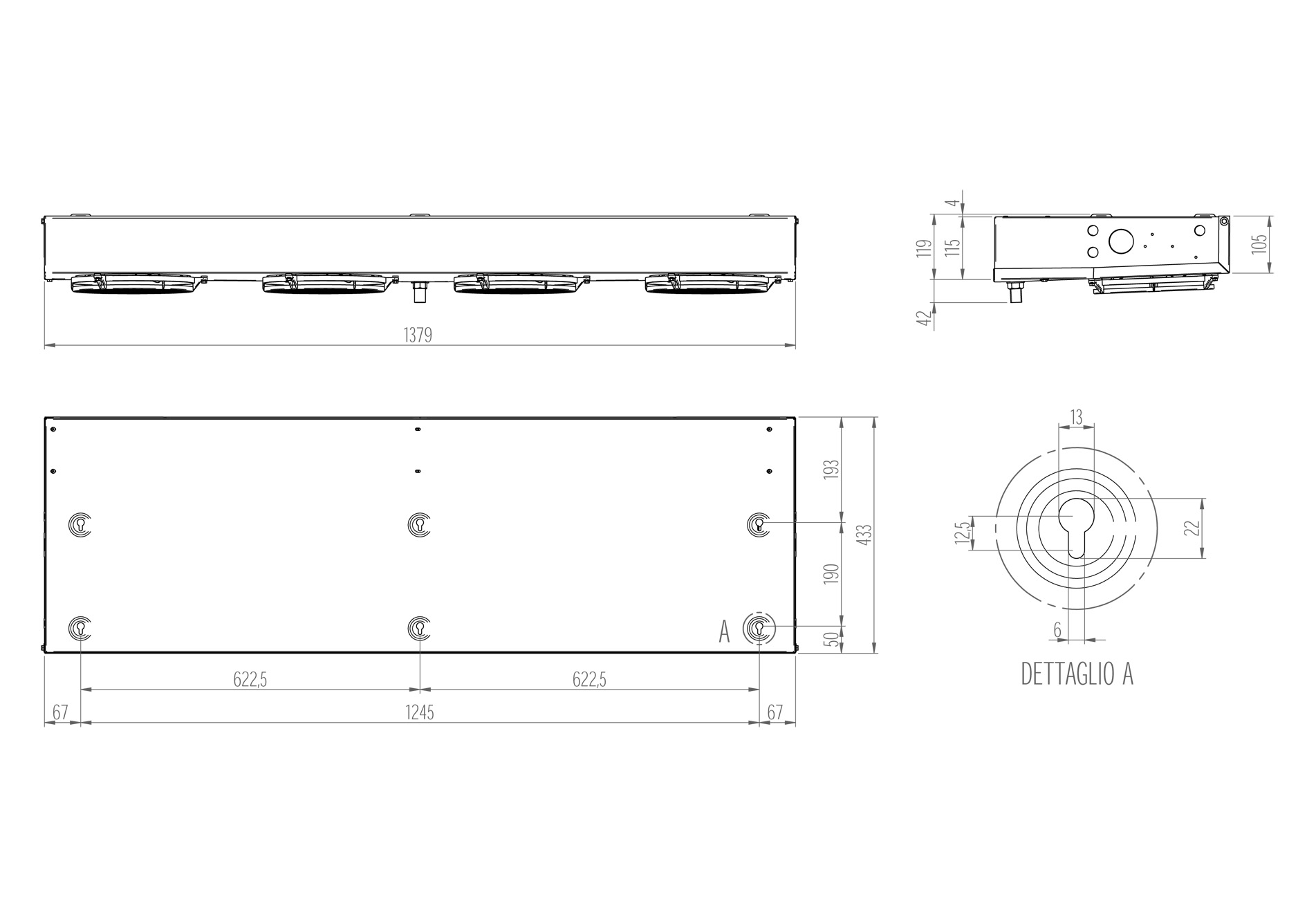 Воздухоохладитель Rivacold RS4380B используется на предприятиях пищевой промышленности, общественного питания и торговли для поддержания оптимальной температуры в холодильных камерах, предназначенных для хранения замороженной продукции. Модель состоит из теплообменника, 4 вентиляторов с защитными решетками и корпуса. Корпус выполнен из алюминиевых панелей, теплообменник – из медных трубок и алюминиевых ламелей, кожухи вентиляторов – из пластика на стальных кронштейнах, винты, шайбы и гайки – из нержавеющей стали.