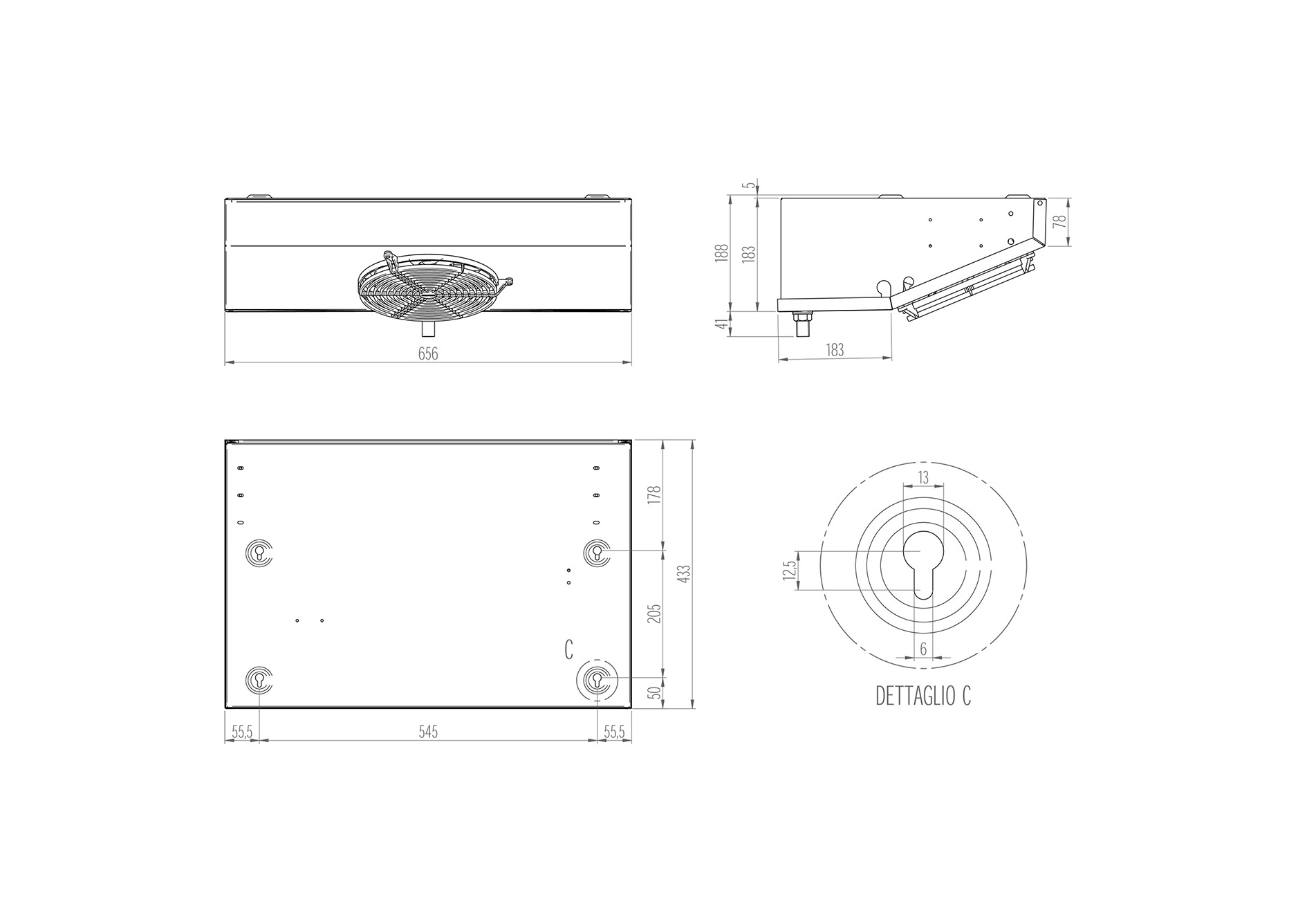 Воздухоохладитель Rivacold RSV1200605 используется на предприятиях пищевой промышленности, общественного питания и торговли для поддержания оптимальной температуры в холодильных камерах, предназначенных для хранения охлажденной и замороженной продукции. Модель состоит из теплообменника, вентилятора с защитной решеткой и корпуса. Корпус выполнен из алюминиевых панелей, теплообменник – из медных трубок и алюминиевых ламелей, кожух и кронштейны вентилятора – из пластика, винты, шайбы и гайки – из нержавеющей стали.