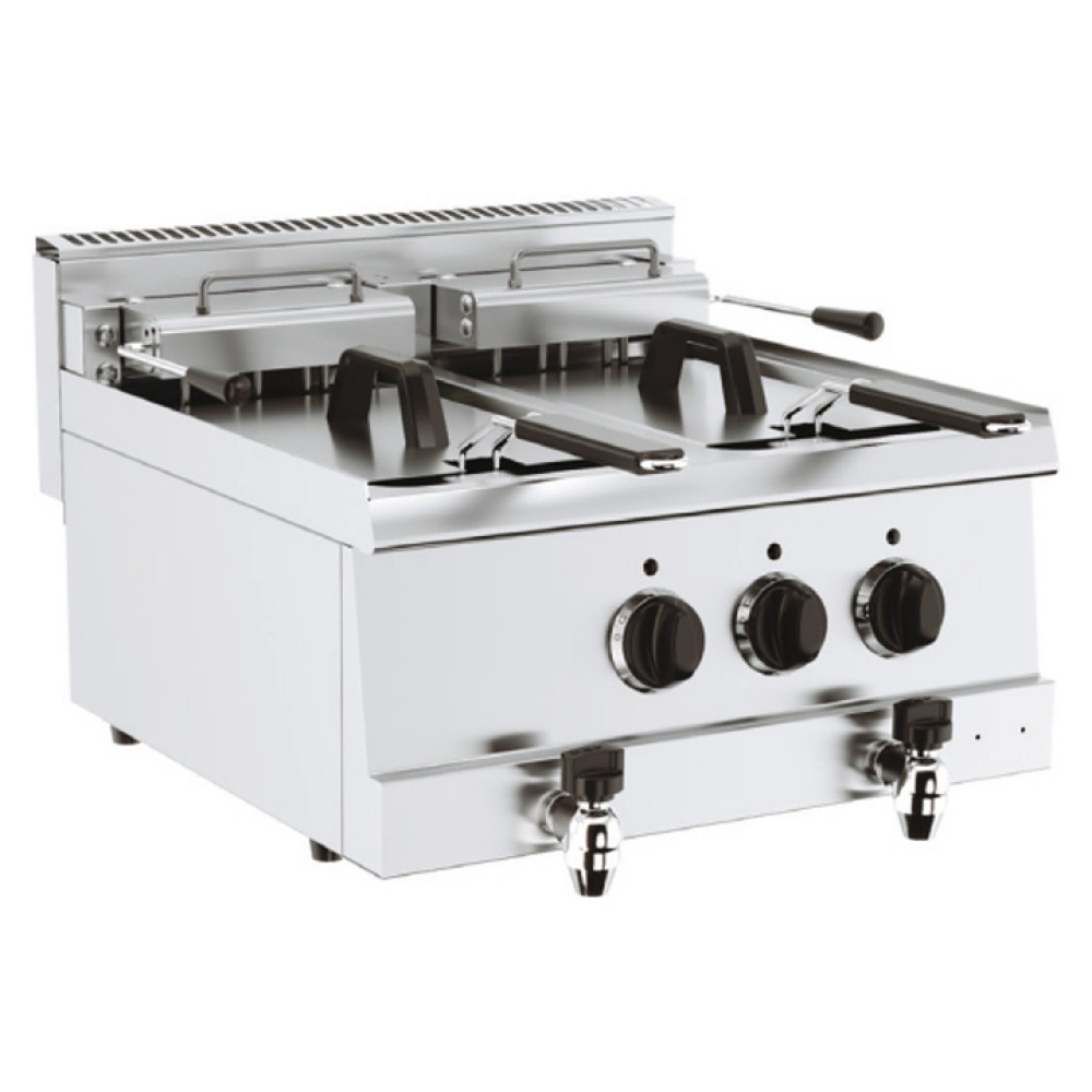 Фритюрница Вулкан Лайт VF66321E используется на предприятиях общественного питания и торговли отдельно или в составе тепловой линии Лайт 600 для приготовления различных блюд в большом количестве горячего масла или жира. Модель оснащена 2 корзинами, индикаторами контроля температуры работы и нагрева, защитным термостатом и регулируемыми ножками. Корпус и корзина выполнены из нержавеющей стали.