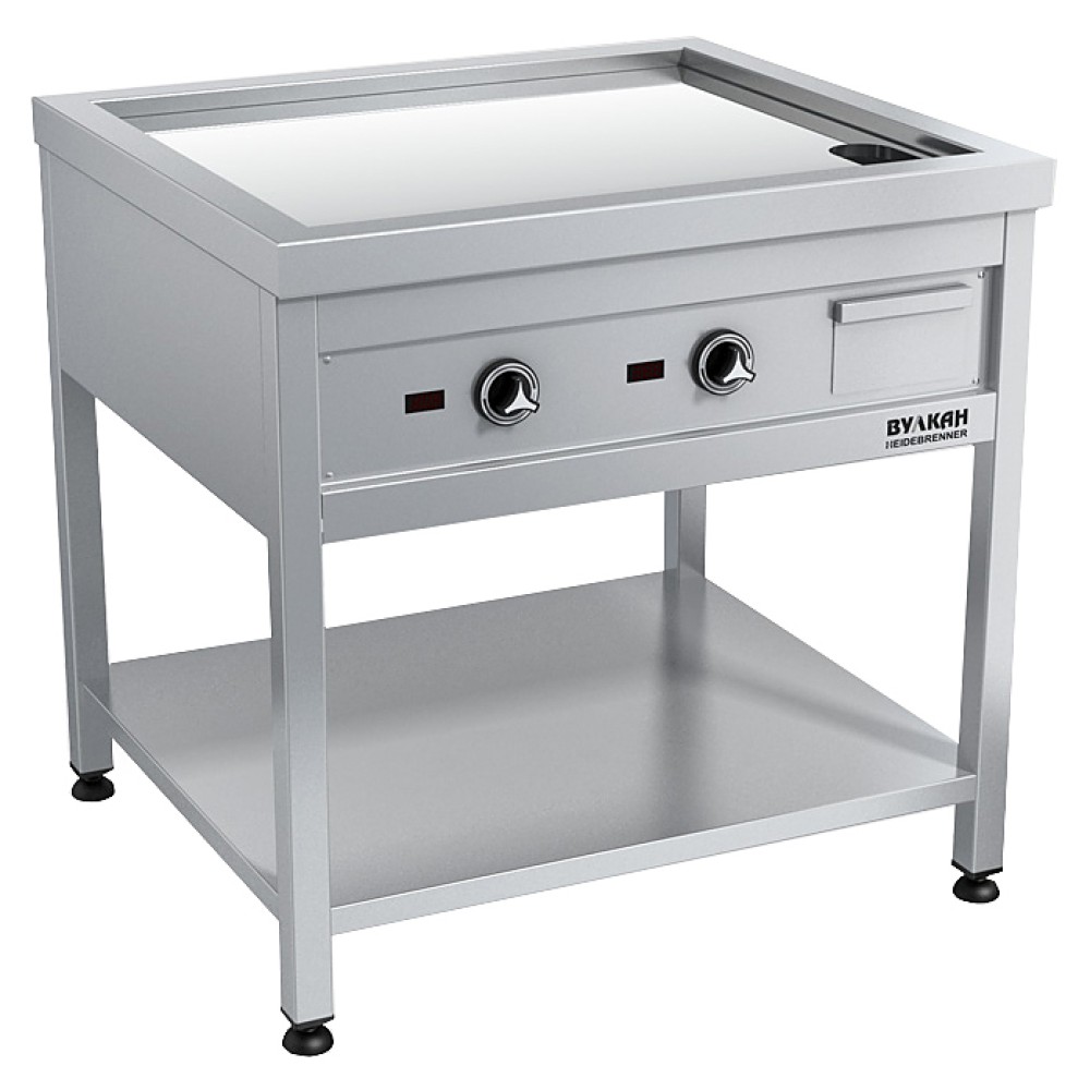 Газовый теппан-яки Вулкан BPD 02 «Ямато» предназначен для приготовления различных блюд путем непосредственного контакта с нагреваемой поверхностью на предприятиях общественного питания и торговли. Модель оснащена 2 зонами нагрева, сливным отверстием, поддоном и коллектором для выхода отработанных газов. Жарочная поверхность имеет зеркальное хромированное покрытие, устойчивое к царапинам и защищающее продукты от пригорания.
