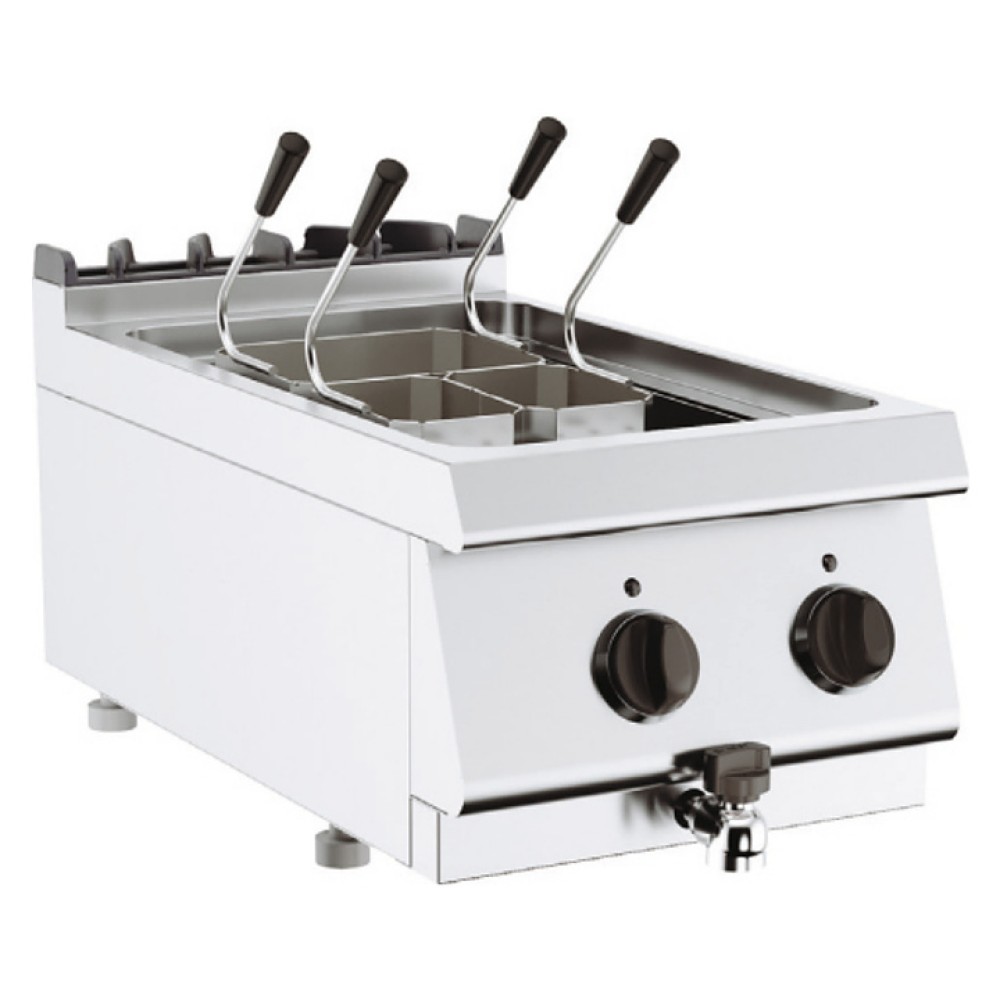 Настольная электрическая макароноварка Вулкан Лайт VM74331E-S используется на предприятиях общественного питания и торговли отдельно или в составе тепловой линии Лайт 700-S для отваривания всех видов макаронных изделий и других продуктов из теста. Модель оснащена термостатом, световым индикатором достижения температуры, краном для слива воды и регулируемыми ножками. Корпус выполнен из нержавеющей стали.