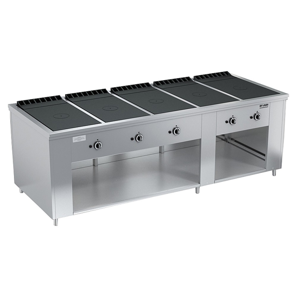 | Вес (без упаковки)445 кг | Количество конфорок5 | Мощность50 кВт |