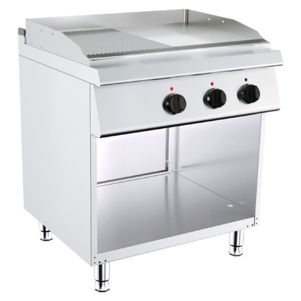 Напольная жарочная поверхность Вулкан Лайт VGC78912E-WK используется на предприятиях общественного питания и торговли отдельно или в составе тепловой линии Лайт 700 для приготовления различных продуктов. Модель оснащена электрическим термостатом для контроля температуры, жиросборником, стендом с 3 сторон и регулируемыми ножками. Корпус и ящик для сбора масла выполнены из нержавеющей стали, рабочая поверхность - из стали с твердым хромированным покрытием, задняя решетка - из чугуна с эмалированным покрытием.
