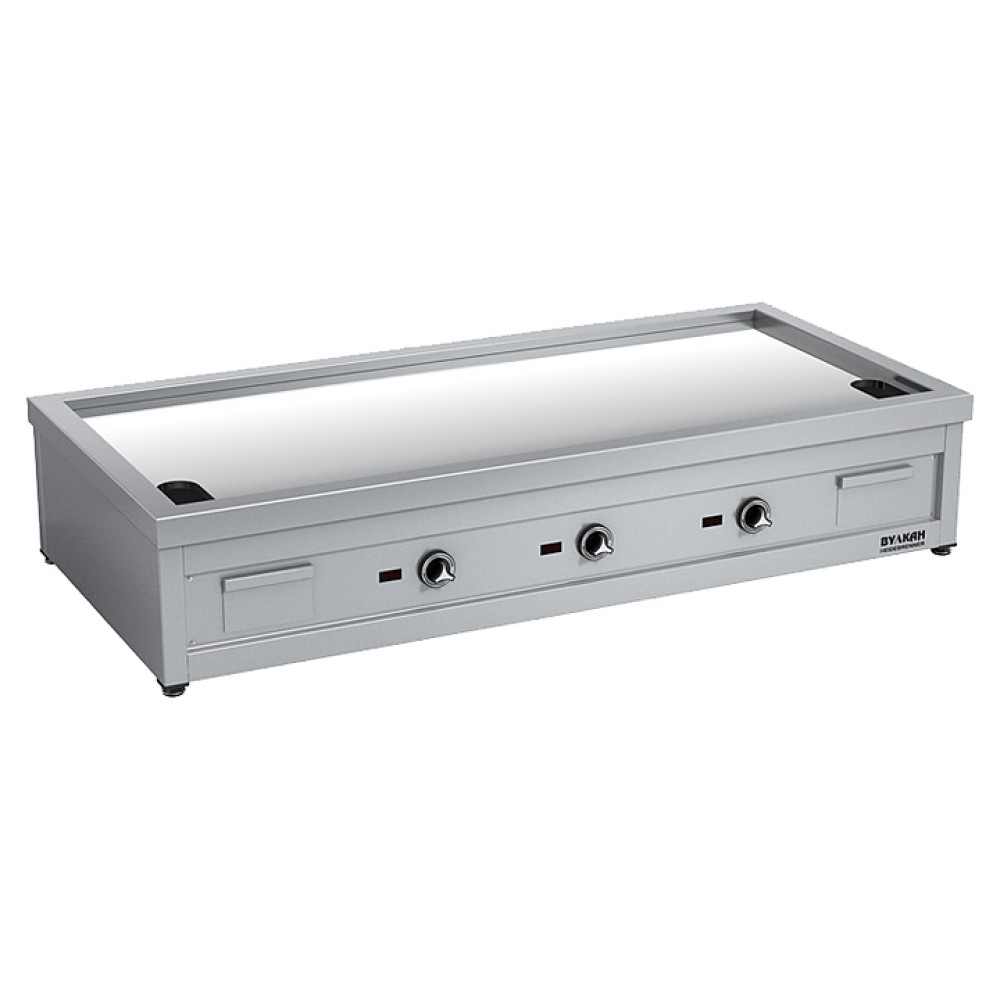 Теппан-яки Вулкан ETP3 «Амаги» предназначен для приготовления различных блюд путем непосредственного контакта с нагреваемой поверхностью на предприятиях общественного питания и торговли. Модель оснащена 3 зонами с независимой регулировкой температуры, 2 сливными отверстиями и поддонами. Благодаря широкому температурному диапазону оборудование позволяет готовить несколько блюд одновременно. Жарочная поверхность имеет зеркальное хромированное покрытие, устойчивое к царапинам и защищающее продукты от пригорания.