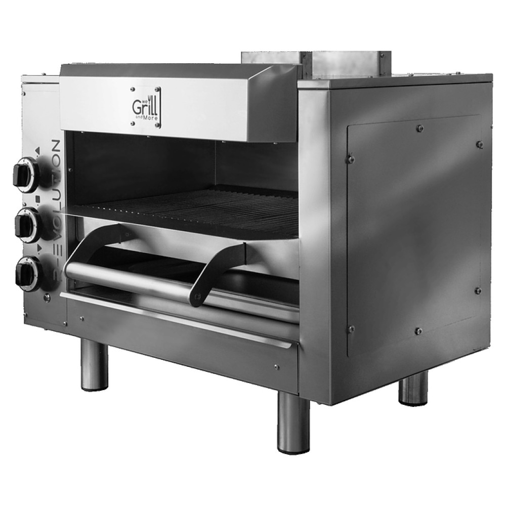 Гриль барбекю WeGrill WGREV.E3 предназначен для приготовления мяса, рыбы, куриных крылышек на предприятиях общественного питания и торговли. Усовершенствованный бройлерный гриль, использующий инфракрасную технологию, которая обеспечивает быстрое и точное приготовление, отсутствие дыма и неприятных запахов. Корпус и выдвижная решетка выполнены из нержавеющей стали AISI 304.
