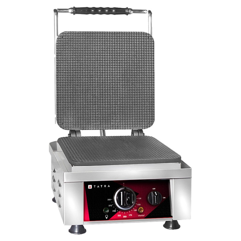 Вафельница Tatra TWI 1 GELATO предназначена для выпечки вафель для мороженого на предприятиях общественного питания и торговли. Модель оснащена электромеханической панелью управления с терморегулятором, 1 зоной выпечки, емкостью для сбора жира и индикаторами питания и нагрева. Корпус выполнен из нержавеющей стали, несъемные рабочие поверхности - из чугуна.