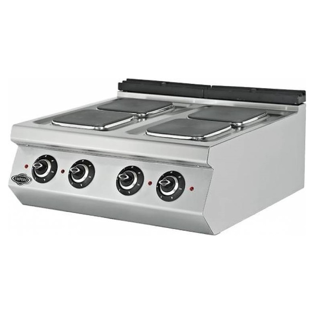 Настольная электрическая плита Empero EMP.PLS.9KE020 серии 900+ предназначена для приготовления большого ассортимента блюд на предприятиях пищевой промышленности, общественного питания и торговли. Модель оснащена кабелем питания, 4 прямоугольными конфорками и расположенной на фронтальной наклонной стенке электромеханической панелью управления с 4 поворотными регуляторами. Корпус выполнен из высококачественной нержавеющей стали.