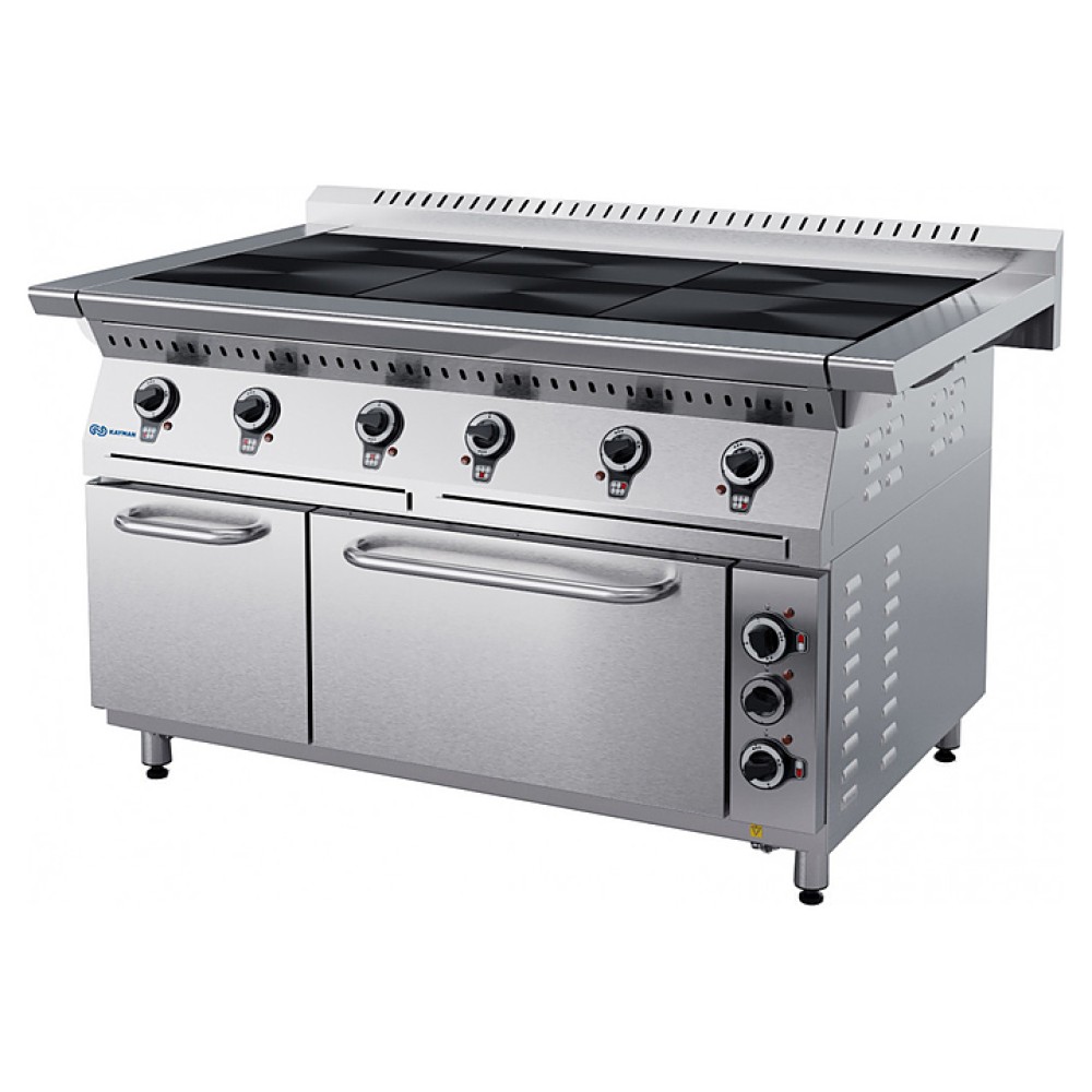 Электрическая плита KAYMAN ПЭ-6-13-МХ предназначена для приготовления первых, вторых и третьих блюд в наплитной посуде на предприятиях общественного питания и торговли. Модель оснащена установленной вровень со столешницей прямоугольной конфоркой. Лицевая часть и столешница выполнены из нержавеющей стали, духовой шкаф - из углеродистой стали.