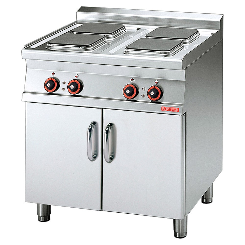 Плита электрическая Lotus PCQ-78ET предназначена для приготовления различных блюд в наплитной посуде на предприятиях общественного питания и торговли. В нейтральном шкафу можно хранить посуду, кухонный инвентарь и продукты, не требующие специального температурного режима.
