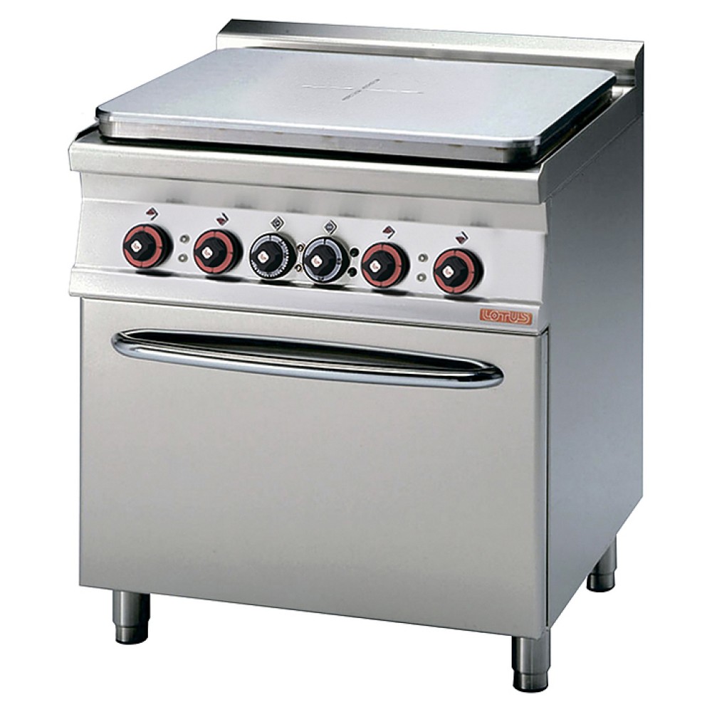 Плита электрическая Lotus TPF-78ET предназначена для приготовления различных блюд в наплитной посуде, выпечки пиццы, пирогов, кексов и др. на предприятиях общественного питания и торговли. Модель оснащена 4-позиционным терморегулятором (до 450 °C), световыми индикаторами, сигнализирующими о включении конфорок, и регулируемыми ножками. Статический духовой шкаф оборудован таймером.