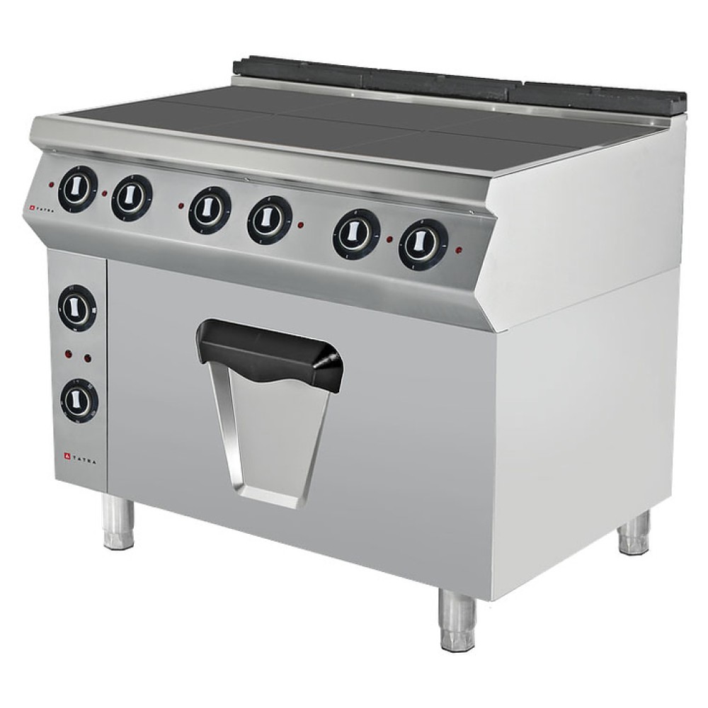 Электрическая плита Tatra TER.127OM серии 700 используется на предприятиях общественного питания и торговли для приготовления различных блюд из мяса, птицы, рыбы и овощей в наплитной посуде, а также жарки и выпекания в жарочном шкафу. Модель оснащена 6 конфорками, статическим электрическим жарочным шкафом MAXI, световыми индикаторами работы нагревательных элементов и регулируемыми по высоте ножками. Подъемные конфорки со специальным креплением на петлях обеспечивают легкий доступ для обслуживания к внутренним элементам плиты. Корпус выполнен из нержавеющей стали, конфорки - из чугуна.