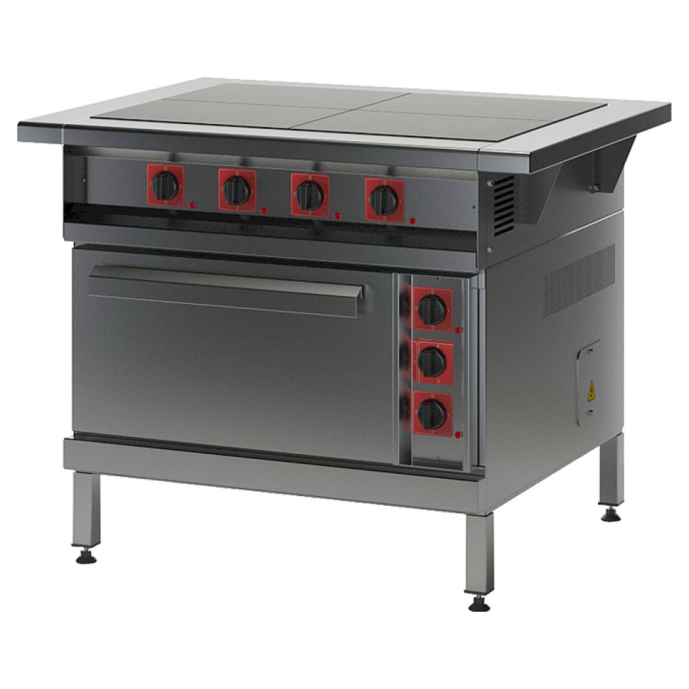 Электрическая плита ТММ ПЭТ-4ШЖ предназначена для приготовления различных блюд в наплитной посуде, выпечки хлеба, пиццы, пирогов и печенья в духовом шкафу на предприятиях общественного питания и торговли. Корпус выполнен из черного металла, лицевая панель - из нержавеющей стали.