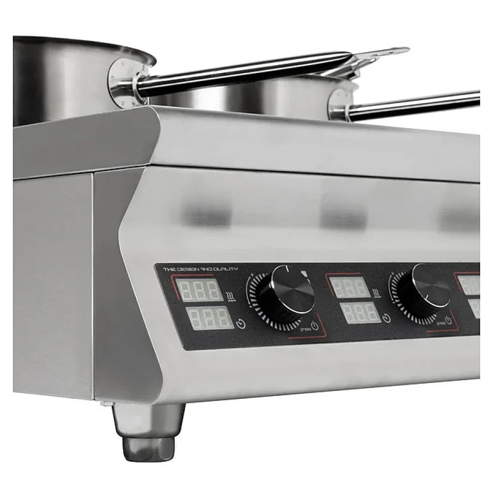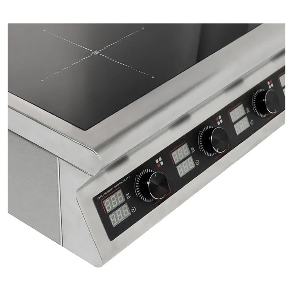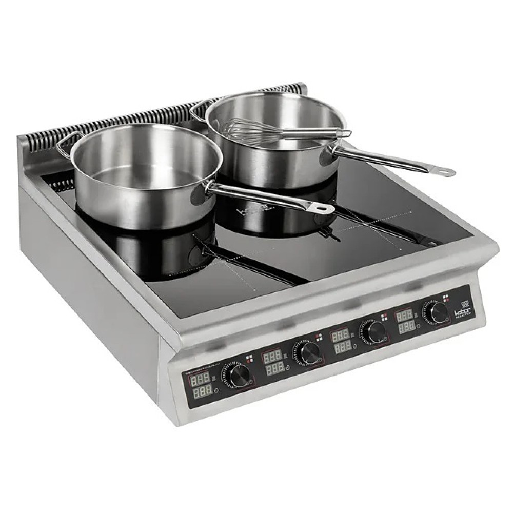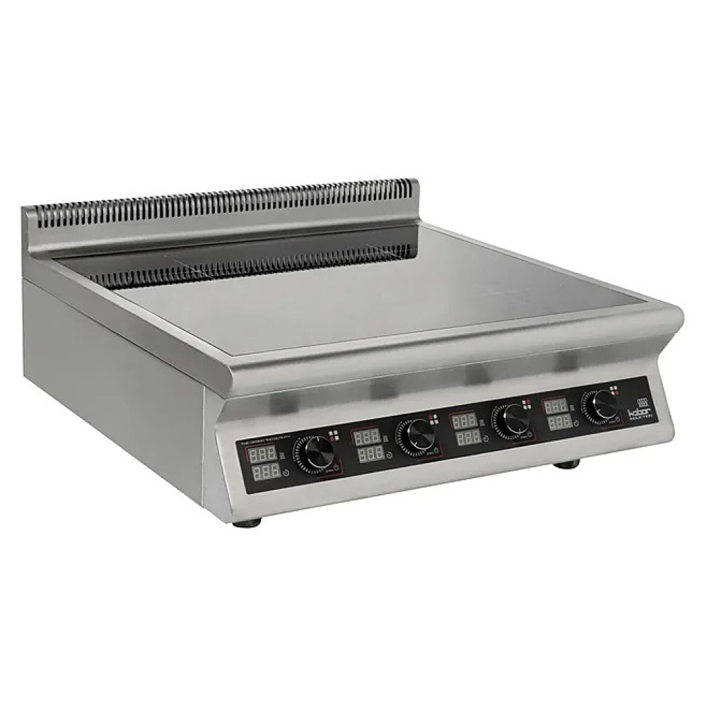Индукционная плита Кобор I7-4T серии 700 для приготовления различных блюд в наплитной посуде на предприятиях общественного питания и торговли. Нагрев поверхности осуществляется почти мгновенно, а выделяемое тепло генерируется только на посуде, сама же плита нагревается незначительно, что позволяет избежать ожогов и потери тепла. Корпус выполнен из нержавеющей стали AISI 304, варочная панель - из монолитной высокопрочной стеклокерамики.