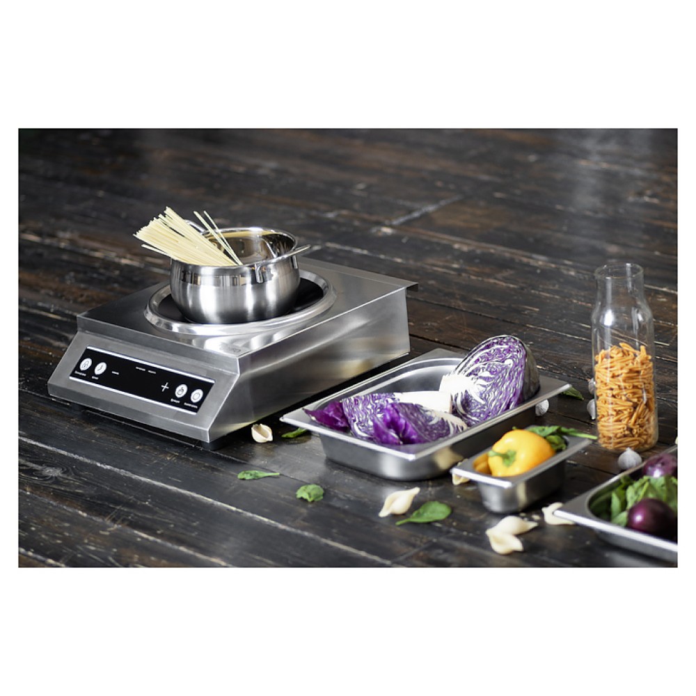 Индукционная плита Rosso C3514-SW предназначена для приготовления различных блюд в наплитной посуде на предприятиях общественного питания и торговли. Модель оснащена электронной панелью управления, WOK-конфоркой и таймером на 180 мин. Рабочая поверхность настольной плиты выполнена в форме полусферы. Корпус выполнен из металла, рабочая поверхность - из стеклокерамики.