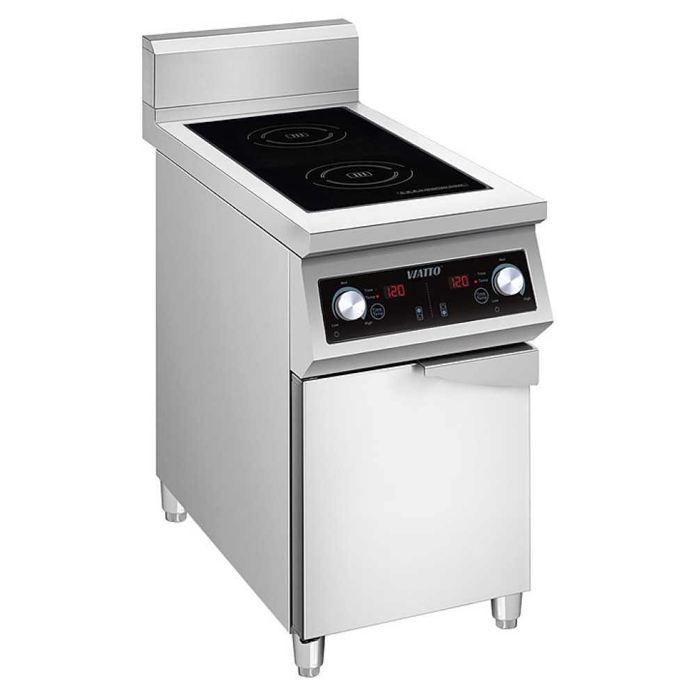 Индукционная электрическая плита VIATTO VA-500G2 предназначена для приготовления широкого спектра блюд в наплитной посуде на предприятиях общественного питания и торговли. Модель оснащена подставкой в виде шкафа с двумя распашными дверьми и комбинированной панелью управления с сенсорными конопками и вращающимися рукоятками для установки температуры и времени. Индукционная конфорка включается сразу после установки на нее посуды и выключается, когда ее убирают, за счет этого сокращается энергопотребление и улучшается микроклимат в кухонном помещении. Корпус выполнен из высококачественной нержавеющей стали.