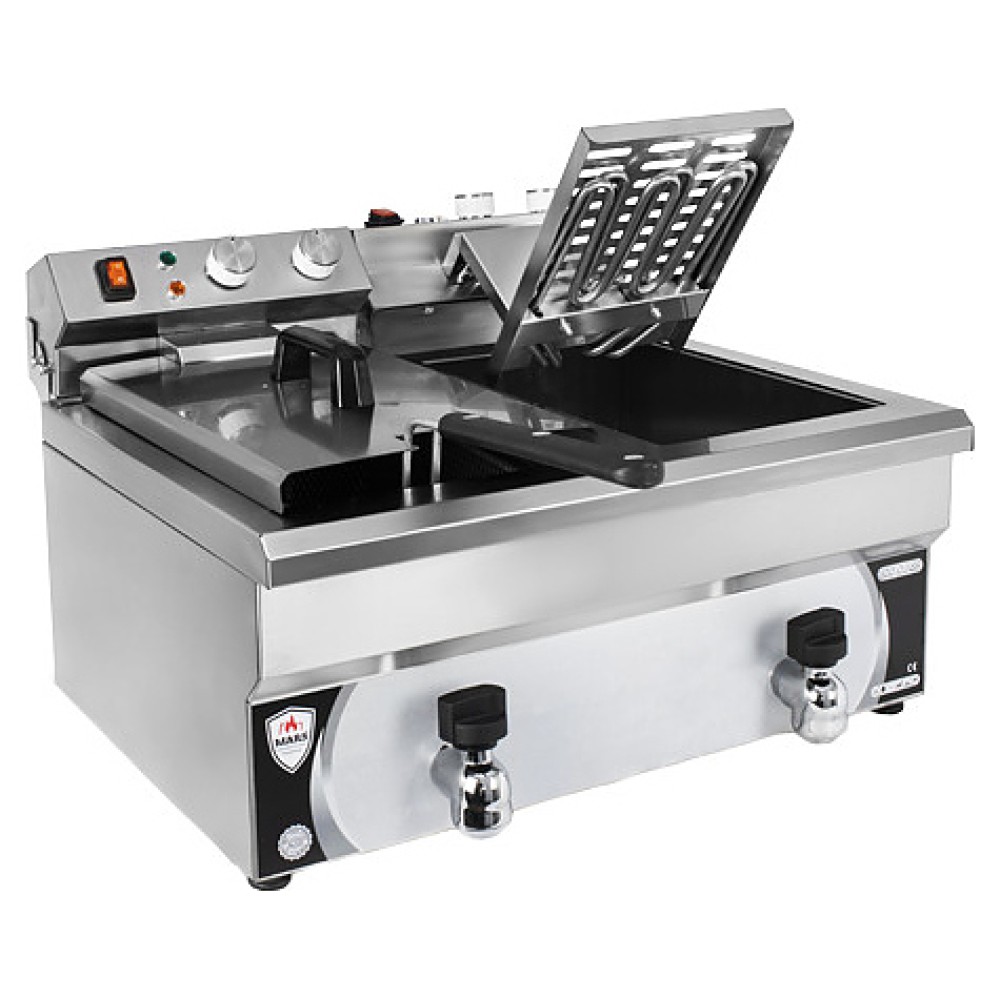 Фритюрница Yukon Eco Class MFR-60E используется на предприятиях общественного питания и торговли для приготовления картофеля-фри и других блюд путем обжарки в большом количестве масла. Модель оснащена 2 откидными крышками с рукоятками, устойчивыми нескользящими опорами и электромеханической панелью управления. Корпус, ванны, крышки и корзины выполнены из нержавеющей стали, накладки на рукоятках – из термостойкого пластика.