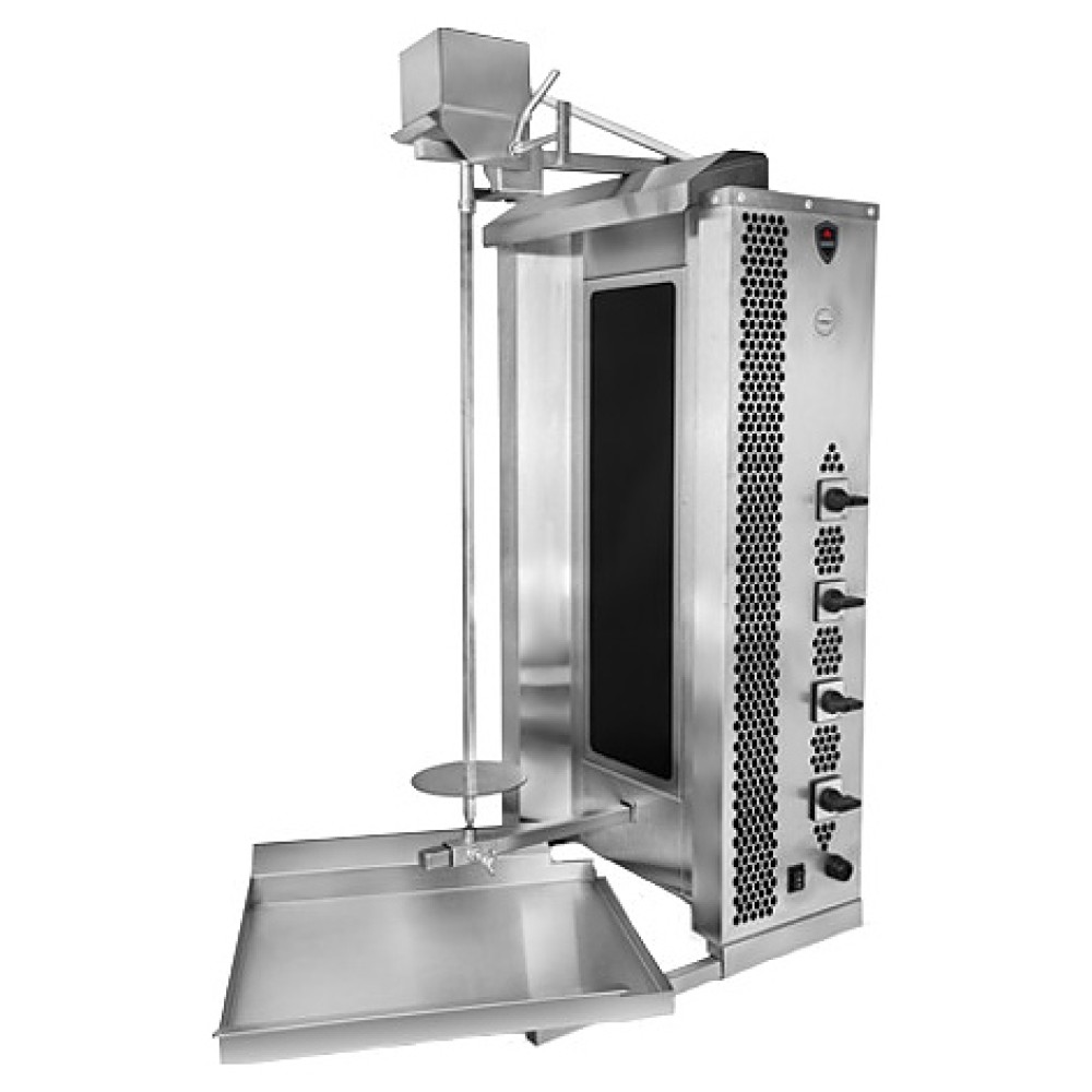 Гриль для шаурмы Yukon MED-04 используется на предприятиях общественного питания и торговли для приготовления мясной начинки для шаурмы. Модель оснащена вертикально-ориентированным жарочным блоком с 4 нагревательными элементами и электромеханической панелью управления.