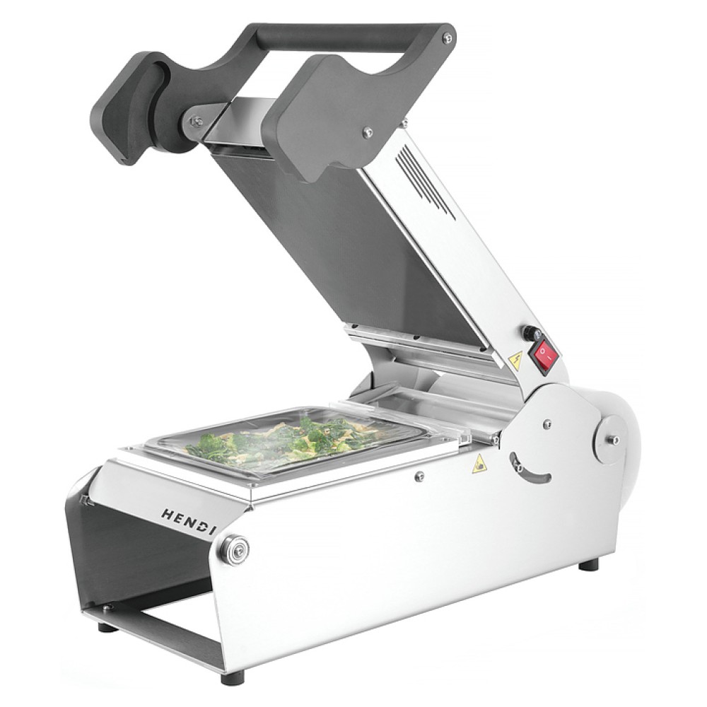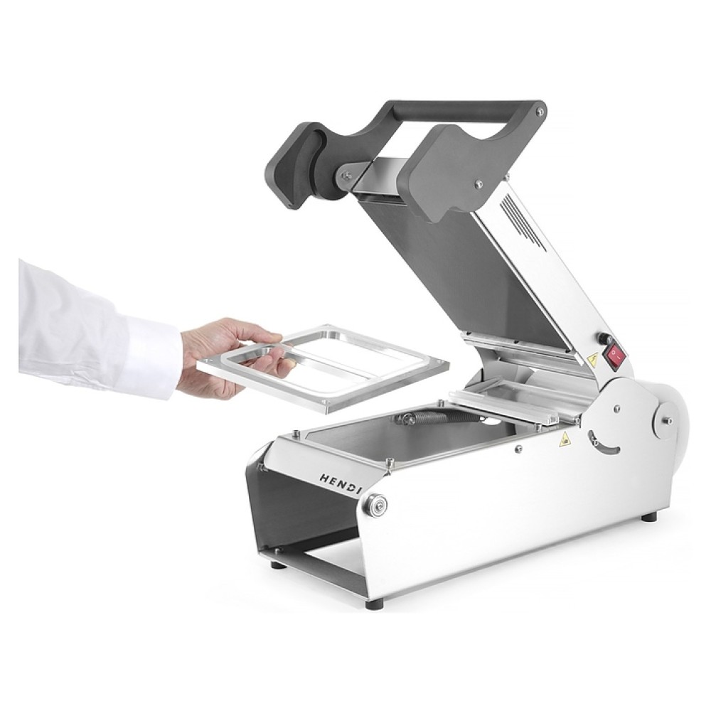 Запайщик лотков HENDI 976722 используется на предприятиях пищевой промышленности, общественного питания и торговли для вакуумной упаковки контейнеров с готовыми продуктами или полуфабрикатами. Модель оснащена цветными светодиодами для контроля работы устройства, предохранительным выключателем с подсветкой и предохранителем перегрузки. Корпус выполнен из нержавеющей стали, ручка - из износостойкого пластика, матрица - из алюминиевого сплава.