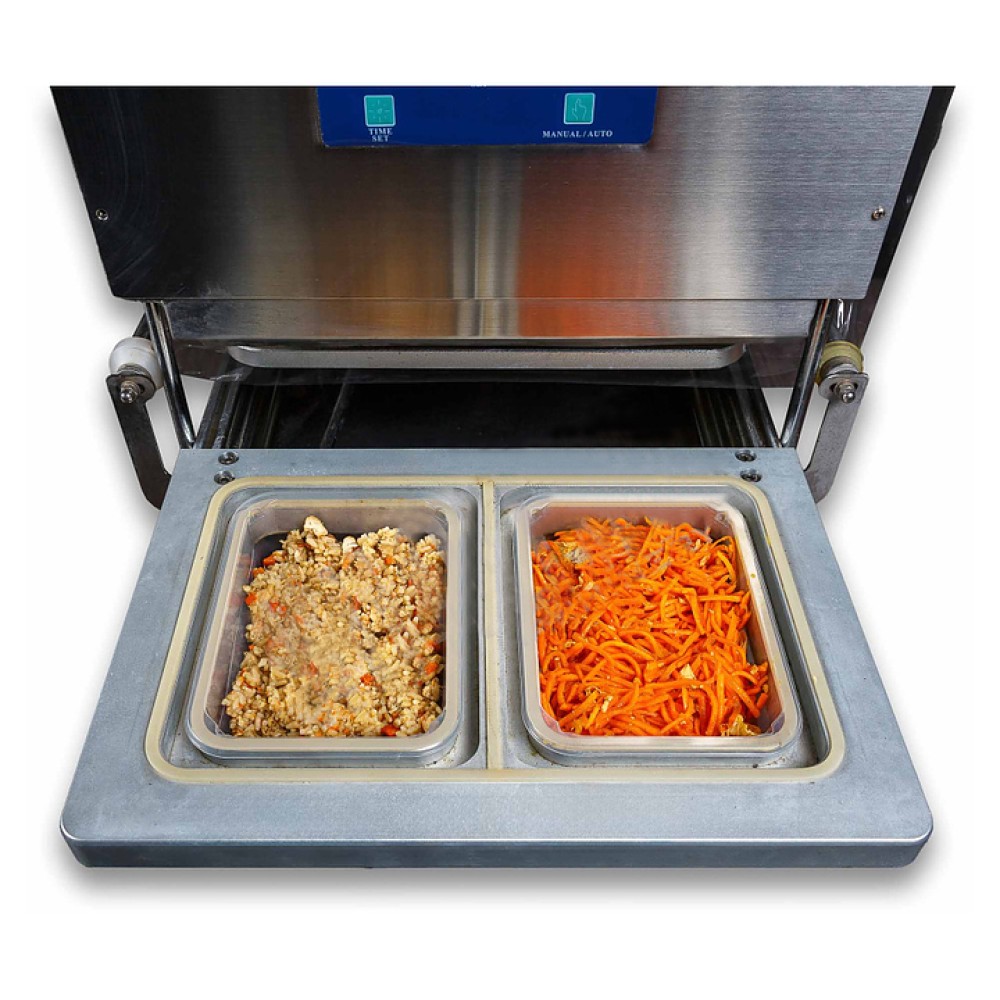 Автоматический запайщик лотков Hualian НL-95A HL-95A SS используется на производственных площадках, предприятиях пищевой промышленности, общественного питания и торговли для запечатывания пластиковых поддонов, лотков, контейнеров термосвариваемой пленкой с обрезкой по его контуру. Модель оснащена возможостью работы одновременно с двумя лотками и регулировкой температуры от 0 до 300 °C. Корпус выполнен из нержавеющей стали.