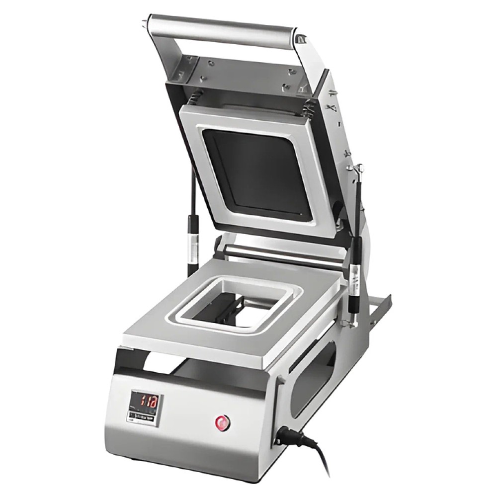 Запайщик лотков Hurakan HKN-CPT2K предназначен для вакуумной упаковки контейнеров с готовыми продуктами, полуфабрикатами, фруктами на предприятиях общественного питания и торговли. Пленка располагается над лотками, после чего запаивается и обрезается. Модель оснащена несъемной матрицей. Корпус выполнен из нержавеющей стали.