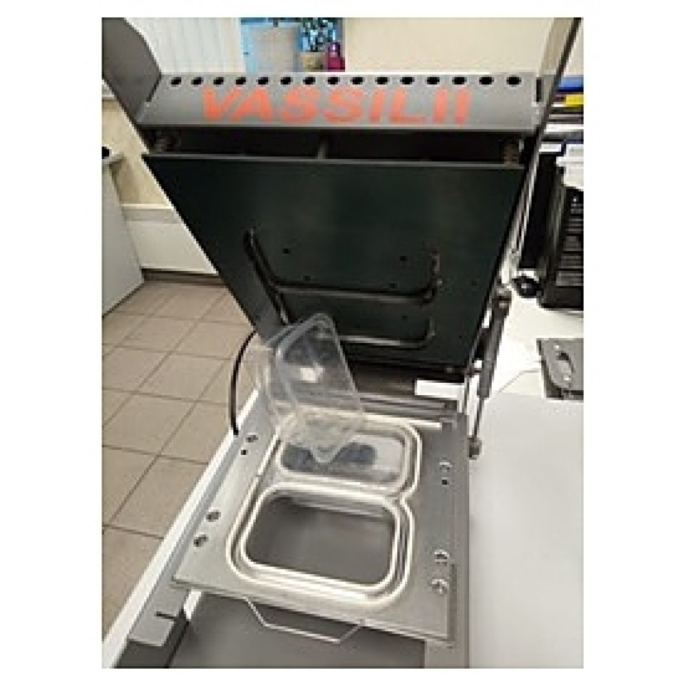 Ручной запайщик лотков VASSILII Контур № 2252 используется на предприятиях общественного питания и торговли для вакуумной упаковки контейнеров с готовыми продуктами или полуфабрикатами. Модель работает с полипропиленом, полистиролом, ПЭТ, картоном, алюминием и прочими материалами. Конструкция выполнена из металла, покрытие нагревающейся поверхности - из тефлона.