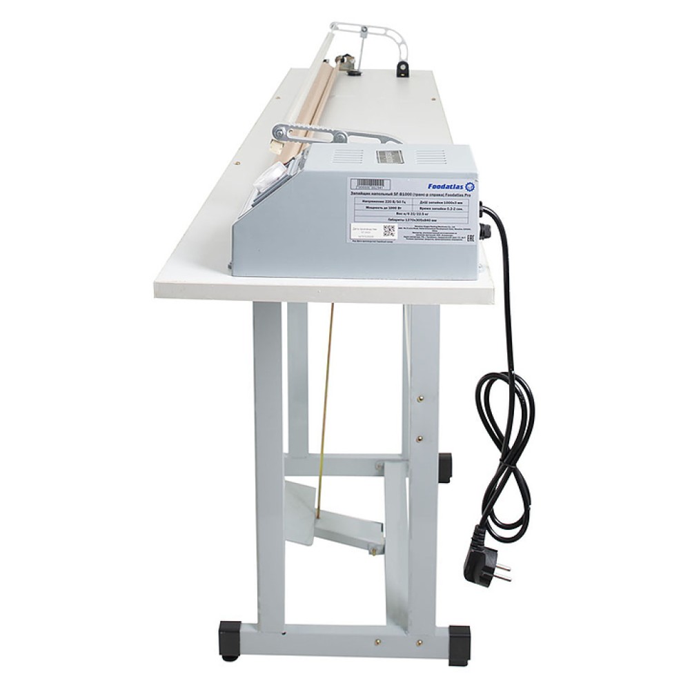 Напольный запайщик Foodatlas SF-B1000 Pro используется на предприятиях общественного питания и торговли для упаковки продуктов питания, напитков, медицинских препаратов, металлоизделий, косметики, книг, предметов искусства и другой продукции полиэтиленовой, БОПП, полипропиленовой, ПВХ, ламинированной и другой термопластической пленкой. Модель оснащена электронным блоком регулировки режима сварки и подвижным прижимным рычагом с силиконовой вставкой.