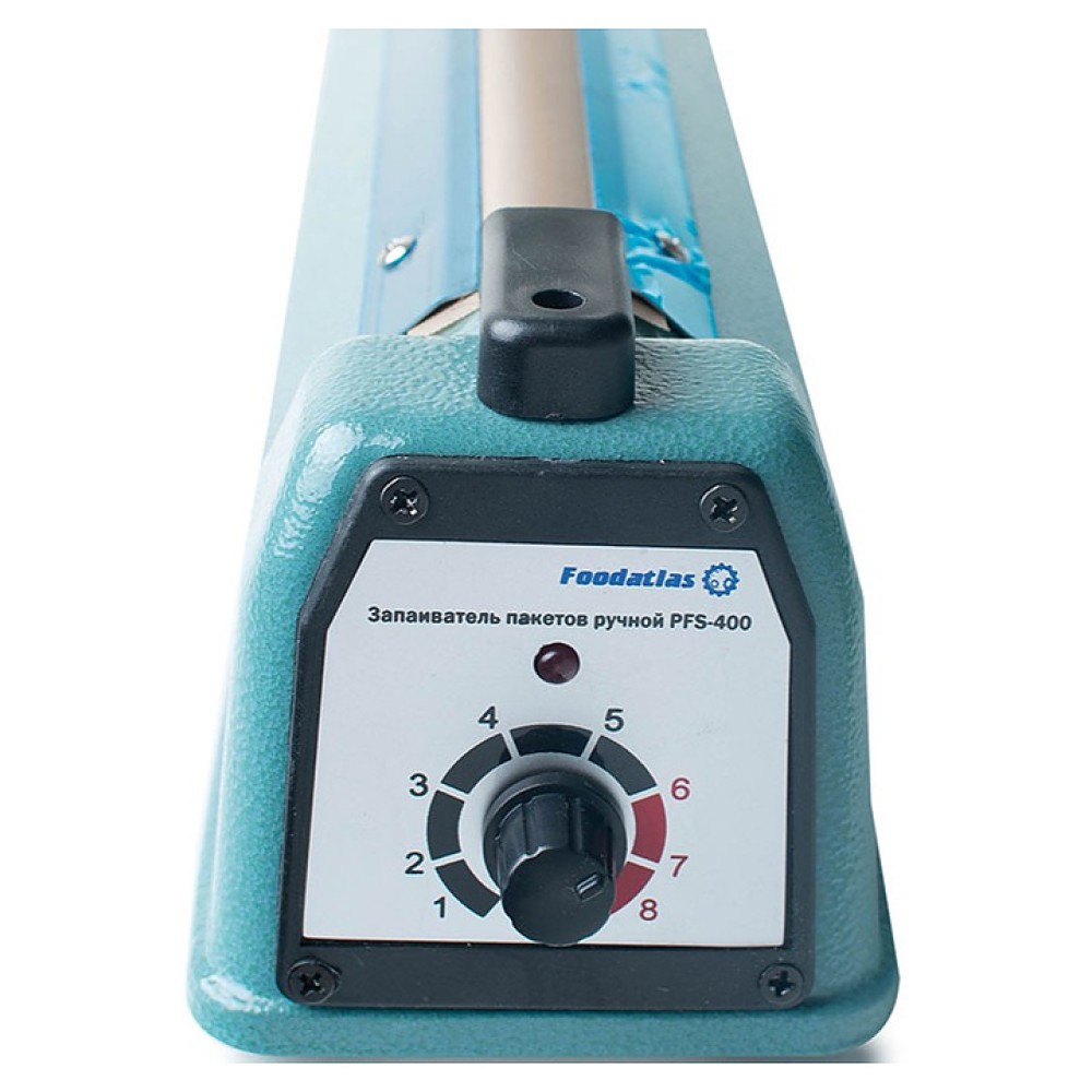 Ручной запайщик пакетов Foodatlas PFS-400 Pro используется на предприятиях пищевой промышленности, общественного питания и торговли для упаковки пищевых продуктов, воды, химического сырья и продукции легкой промышленности в готовые пакеты из различных термопластичных пленок. Модель оснащена электронным датчиком контроля температуры. Корпус выполнен из металла.