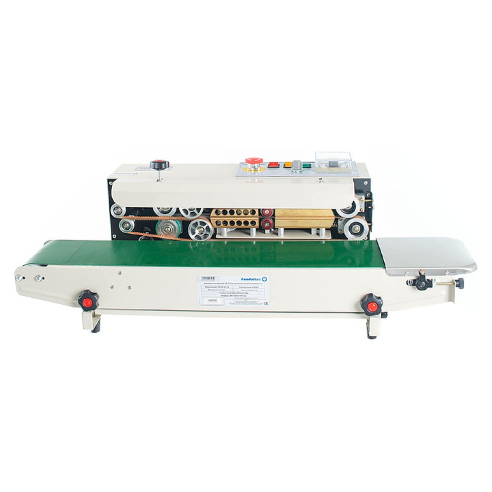 Горизонтальный роликовый запайщик Foodatlas FR-770 Pro используется на предприятиях общественного питания и торговли для автоматической конвейерной упаковки продуктов питания, напитков, медицинских препаратов, металлоизделий, косметики, книг, предметов искусства и другой продукции. Модель оснащена 2 планками нагрева и 2 охлаждения, что позволяет улучшить внешний вид и качество запайки пленки и увеличить скорость работы.