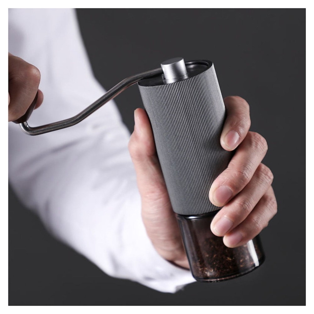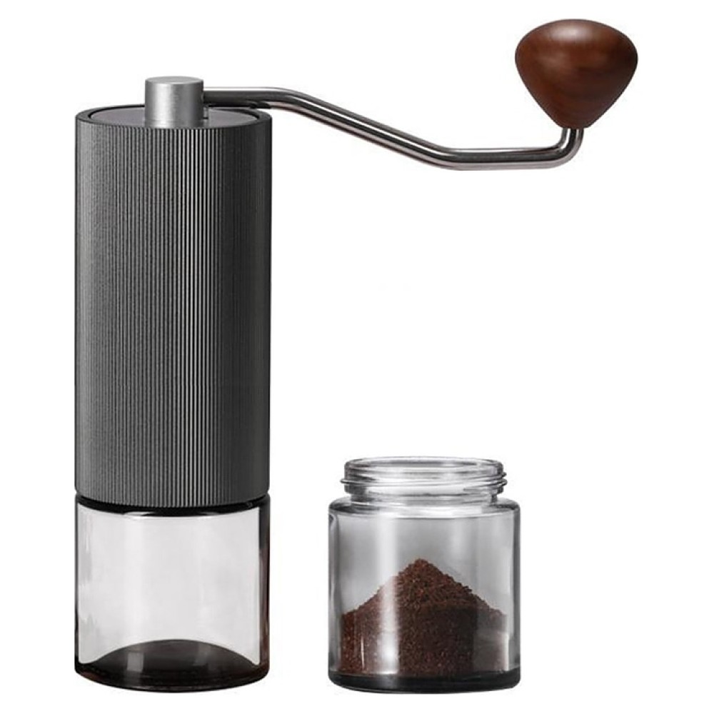 Механическая кофемолка ZeroHero S02 используется в офисах, гостиницах и домашних усдлвиях для приготовления молотого кофе из зерен для альтернативных способов заваривания – турка, гейзерная кофеварка, аэропресс, пуровер, капельная кофеварка, френч-пресс. Модель оснащена удобной изогнутой рукояткой с массивным наконечником. Корпус цилиндрической формы выполнен из алюминиевого сплава с покрытием серого оттенка, контейнер для молотого кофе – из стекла, наконечник рукоятки – из массива двевесины, жернова – из нержавеющей стали, упаковка – картонная коробка.
