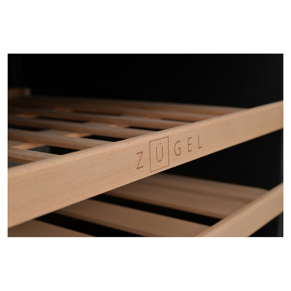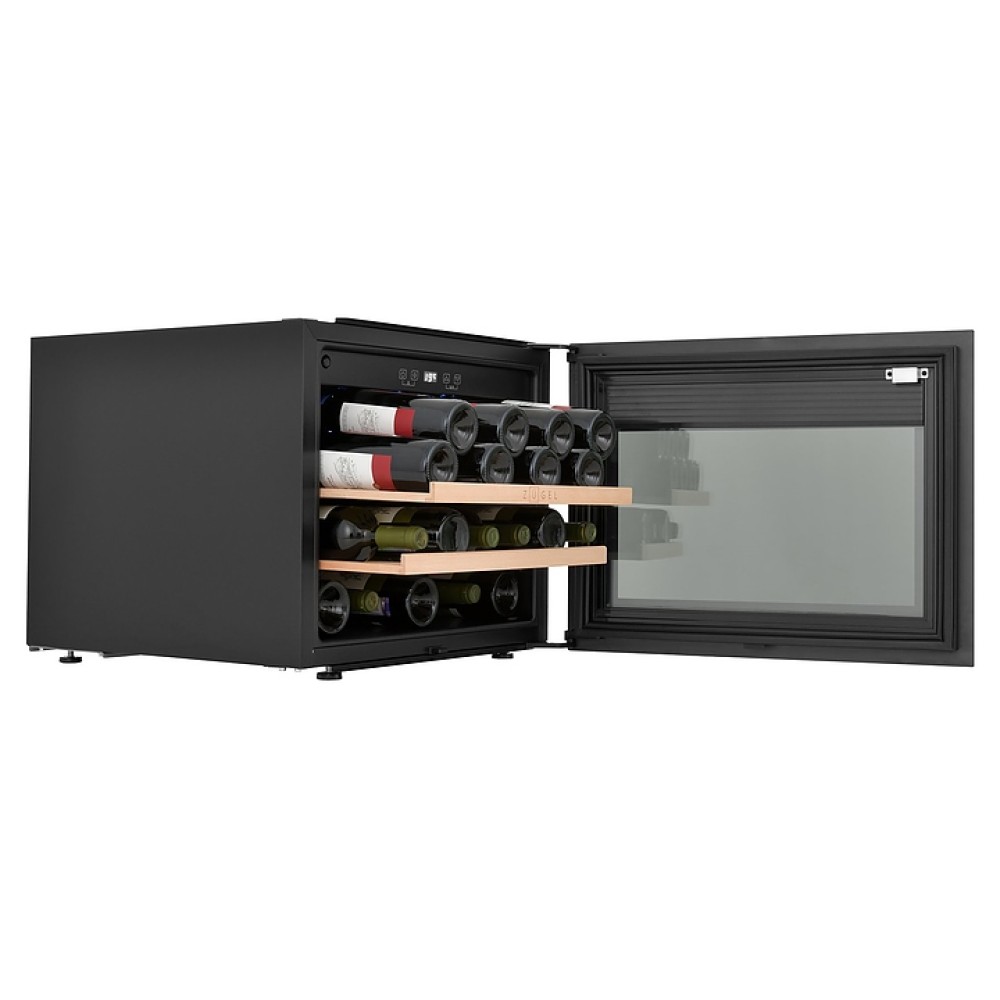 Винный шкаф Zugel ZCWI280B предназначен для хранения при оптимальных условиях бутилированного вина различных сортов в барах, ресторанах, специализированных магазинах, подсобных складских помещениях, а также домашних условиях. Модель оснащена монотемпературной холодильной камерой c интегрированными направляющими для полок, правосторонней распашной дверью с обзорным остеклением, кабелем питания, расположенной внутри камеры электронной панелью управления с сенсорными функциональными клавишами и цифровым светодиодным дисплеем с белой подсветкой индикации. Корпус выполнен из металла с антикоррозийным покрытием, дверь с полным фронтальным остеклением без винтового крепежа, рама двери и внутренняя облицовка камеры черного цвета, остекление – из закаленного стекла с дымчатой тонировкой, полки – из массива буковой древесины с фронтальной гравировкой логатипа.