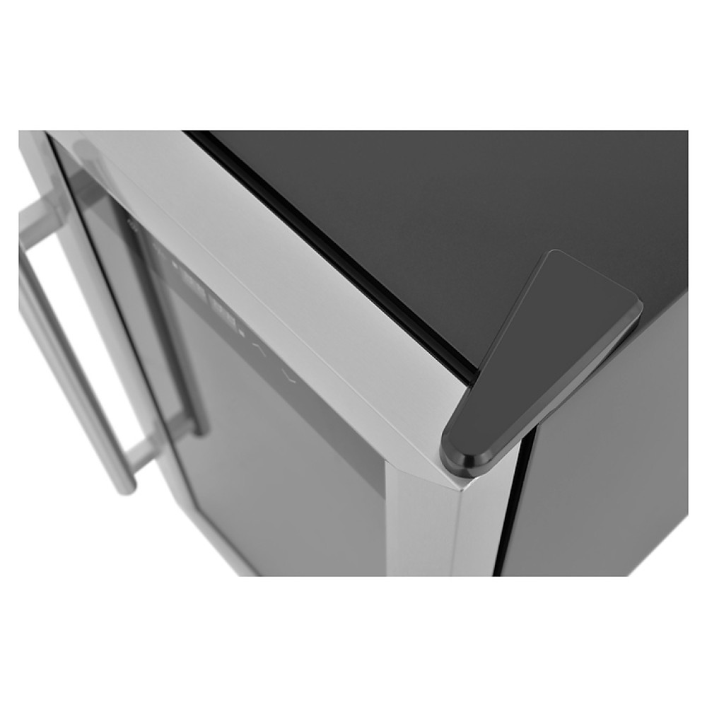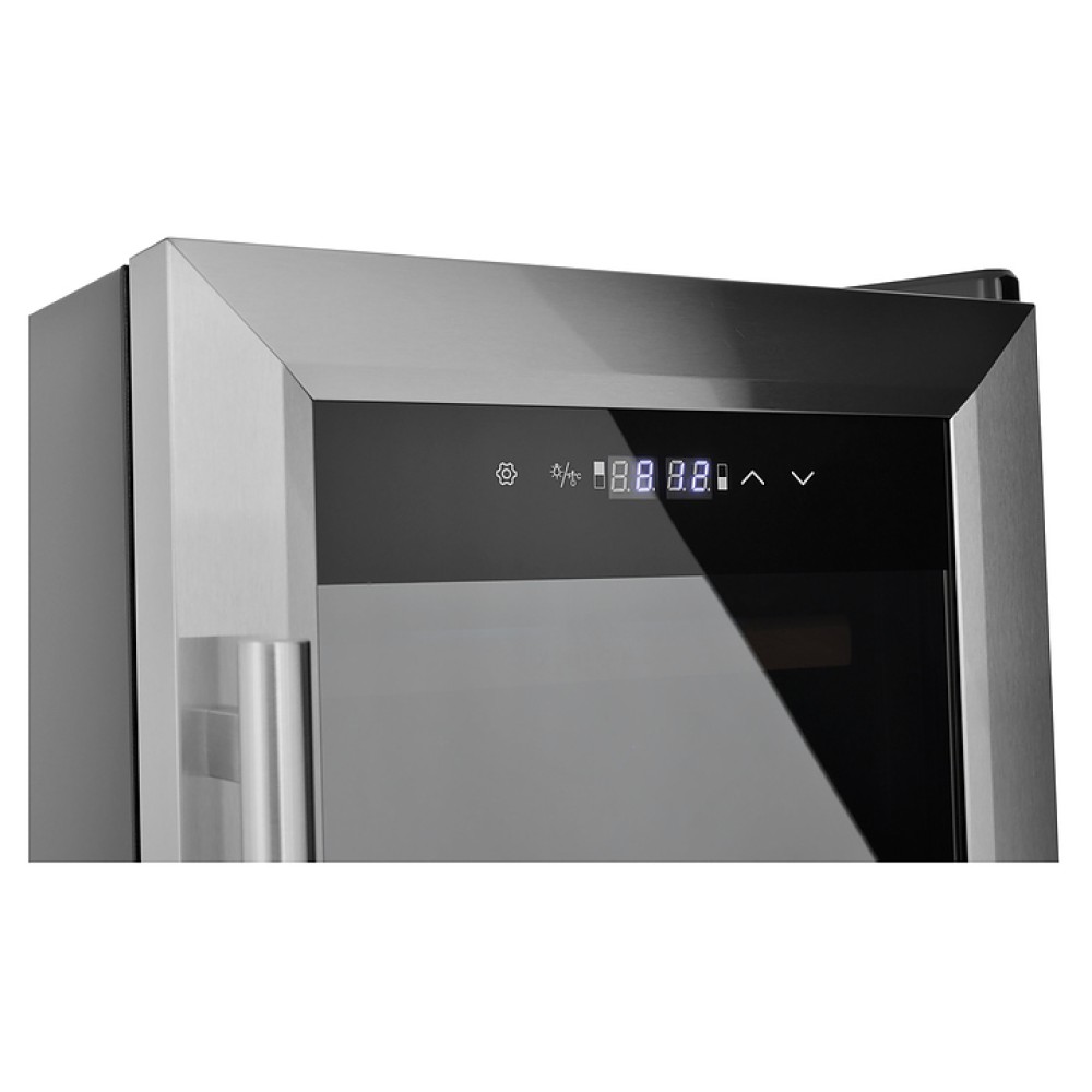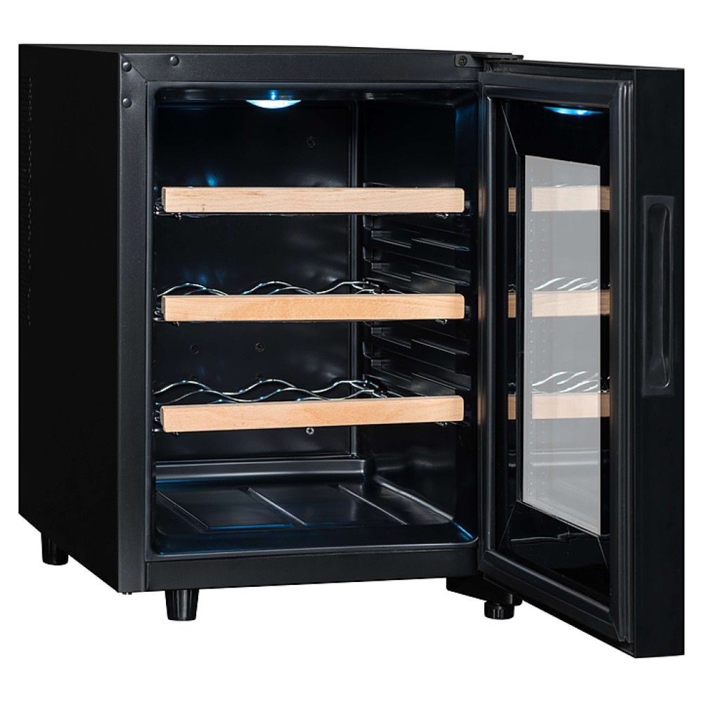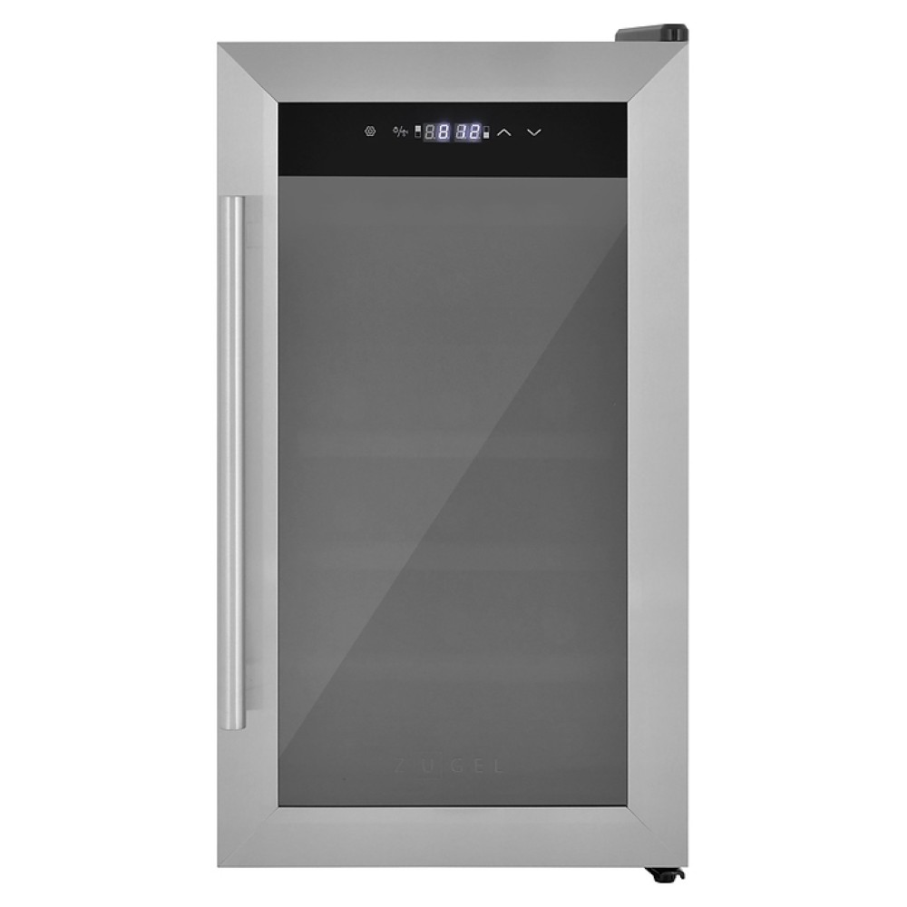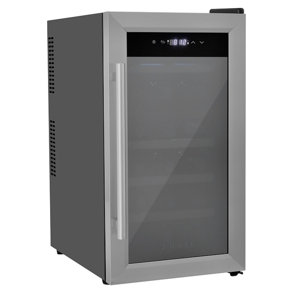 Винный шкаф Zugel ZTWF182DX предназначен для хранения при оптимальных условиях бутилированного вина различных сортов в барах, ресторанах, специализированных магазинах, подсобных складских помещениях, а также домашних условиях. Модель оснащена холодильной камерой c 2 температурными зонами, интегрированными направляющими для полок, правосторонней распашной дверью с вертикальной трубчатой рукояткой и обзорным остеклением, кабелем питания, расположенной на фасаде двери электронной панелью управления с сенсорными функциональными клавишами и 2 цифровыми жидкокристаллическими дисплеями с белой подсветкой индикации. Корпус выполнен из металла с матовым антикоррозийным покрытием черного цвета, фронт дверной рамы – из нержавеющей стали, рукоятка – из металла с серебристой поверхностью, внутренняя облицовка камеры черного цвета, остекление – из тонированного закаленного стекла, полки – из массива буковой древесины с фронтальной гравировкой логатипа.